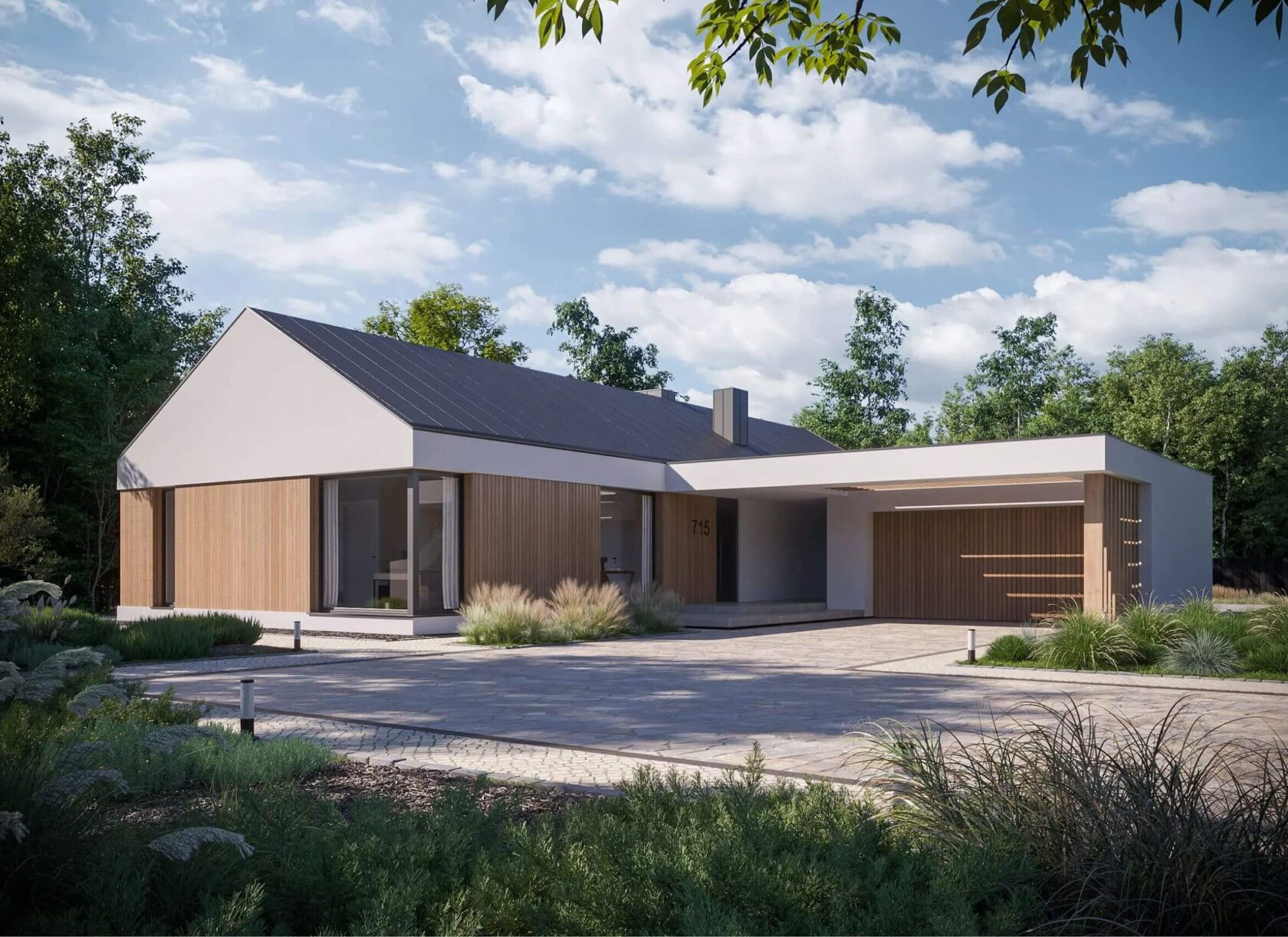 Проект дома с гаражом «Бенидорм» — это идеальное решение для тех, кто ищет гармонию, надежность и уют за городом. Этот просторный коттедж площадью 253 квадратных метра сочетает в себе эстетику современного фермерского стиля с практичностью и долговечностью.