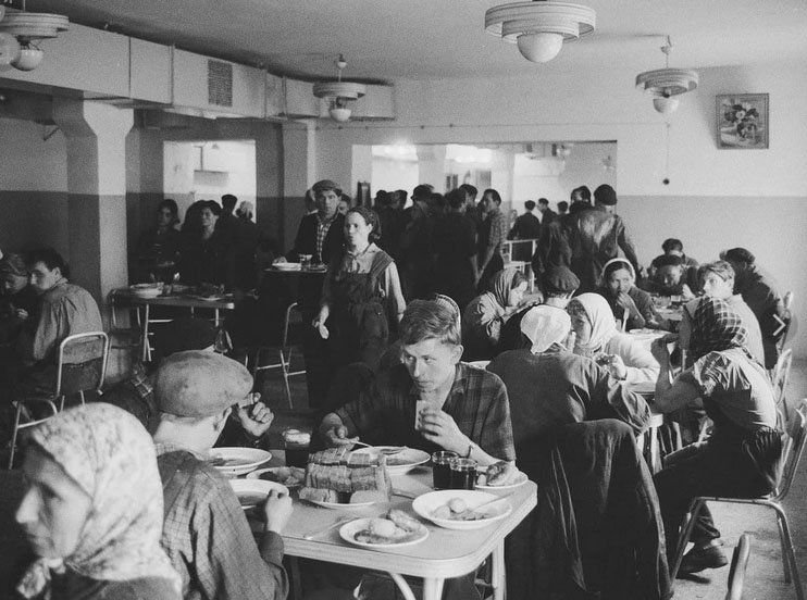 Считалось, что у советского человека практически нет времени, да и не нужно есть дома: утром пару бутербродов с чаем, потом бегом на любимую работу, за 40-60-минутный обед можно перекусить в заводской столовой, по дороге обсудить с коллегами важные рабочие моменты, а вечером поужинать в кафе ДК, сразу после лекции о нравственном облике советского человека.Со стороны правительства людям не нужно было тратить драгоценное время на готовку и болтовню на кухне. Эти «лишние» часы лучше использовать для работы на заводах в родной стране.