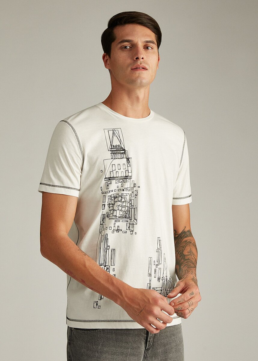 Для офиса лучше выбирать футболки спокойных, сдержанных оттенков: белого, светло-серого, тёмно-синего. Яркие цвета и броские принты оставьте для неформальной обстановки. Уместно будут смотреться модели с графическими рисунками или контрастной строчкой.